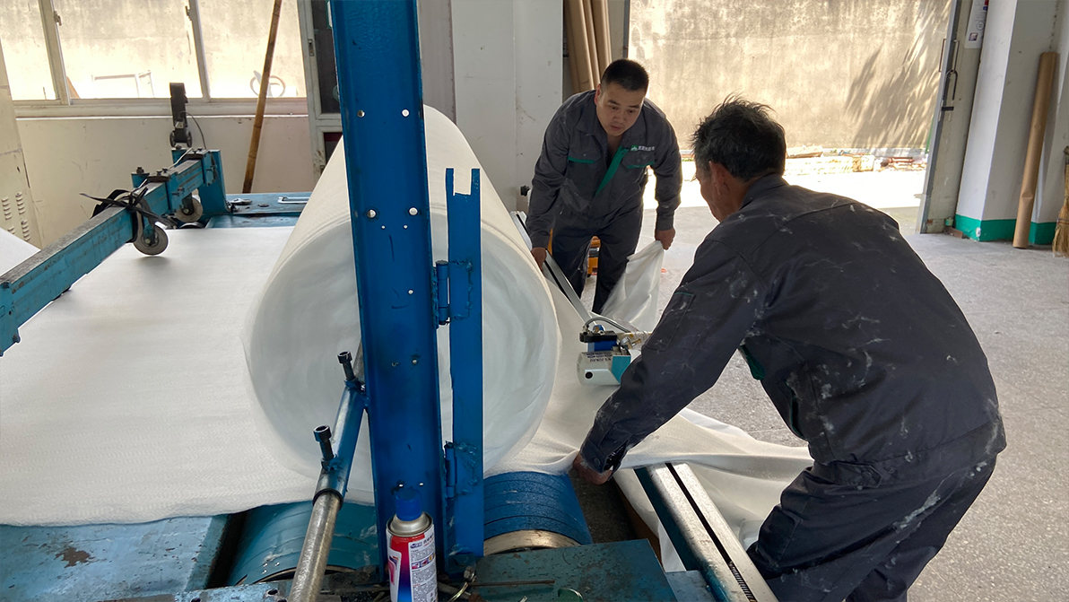 以滌綸、丙綸等為原材料,經過開松、梳理、鋪網、針刺、熱軋工藝制造,